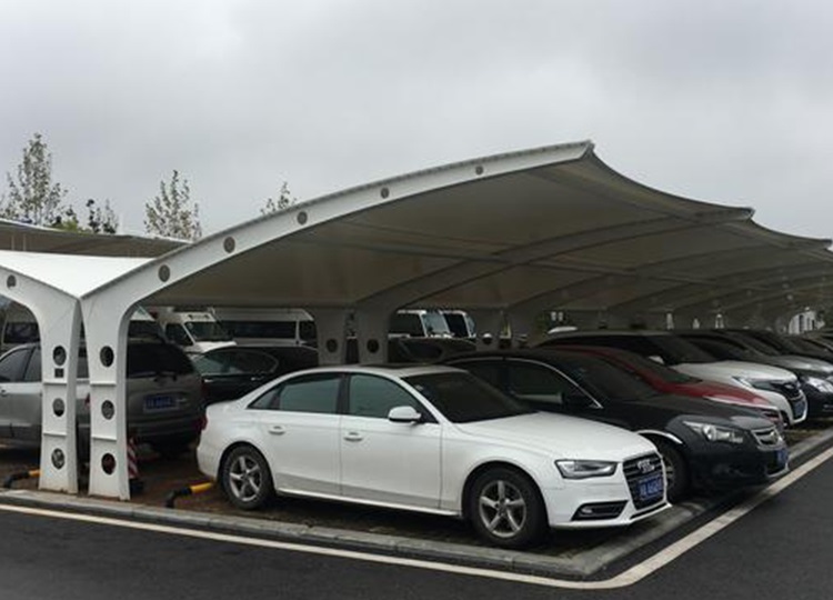 鑫淮膜结构车棚案例:加厚阻燃PVDF膜材,广泛用于小区单位、公园,园区景区等户外停车场、汽车非机动车充电桩专用停车棚